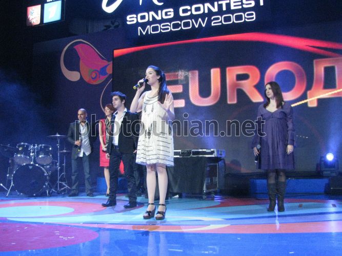 Representative from Cyprus at "Eurovision - 2009" international song contest Christina Metaxa appearing on stage during the Ukrainian party within the frameworks of "Eurovision - 2009" international song contest, in Moscow, Saturday, May 9, 2009. The Ukrainian party took place this day, artists, who take part in the contest this year and special guests from Ukraine, were invited to this party. Photo by Roman Tsimbalyuk/UNIAN