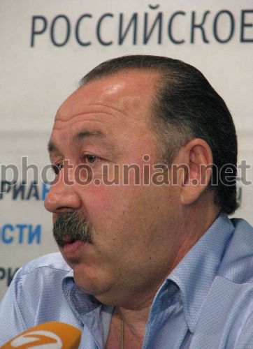 New chief coach of Dynamo FC (Kyiv) Valeriy Gazzaev answering the questions of journalists during the news conference, in Moscow (Russia), on Monday, June 1, 2009. During the news conference Valeriy Gazzaev said that Dynamo FC (Kyiv) is well prepared and well staffed team. According to the words of V. Gazzaev, he communicated with Y. Syomin a lot and knows practically all about Dynamo FC (Kyiv). The coach of Dynamo said that he has practically all authorities to strengthen the team. Moreover, Valeriy Gazzaev noted that an intensive preparation for final of Championship of Europe 2012 takes place in Ukraine. At the same time he could not forecast the final result of UEFA selection of the cities, where matches of Euro-2012 will take place. Former coach of Moscow CSCA Valeriy Gazzaev was appointed as new chief coach of Dynamo FC (Kyiv) on May 25. The contract with Valeriy Gazzaev was signed for the term of three years. Russian specialist will get down to fulfilling his duties on June 20. Photo Roman Tsimbalyuk/UNIAN