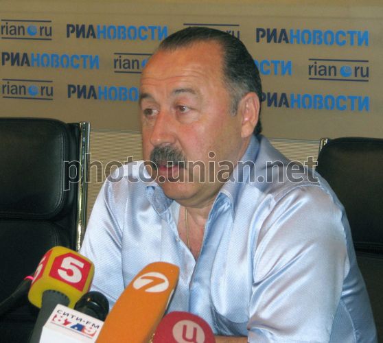 New chief coach of Dynamo FC (Kyiv) Valeriy Gazzaev answering the questions of journalists during the news conference, in Moscow (Russia), on Monday, June 1, 2009. During the news conference Valeriy Gazzaev said that Dynamo FC (Kyiv) is well prepared and well staffed team. According to the words of V. Gazzaev, he communicated with Y. Syomin a lot and knows practically all about Dynamo FC (Kyiv). The coach of Dynamo said that he has practically all authorities to strengthen the team. Moreover, Valeriy Gazzaev noted that an intensive preparation for final of Championship of Europe 2012 takes place in Ukraine. At the same time he could not forecast the final result of UEFA selection of the cities, where matches of Euro-2012 will take place. Former coach of Moscow CSCA Valeriy Gazzaev was appointed as new chief coach of Dynamo FC (Kyiv) on May 25. The contract with Valeriy Gazzaev was signed for the term of three years. Russian specialist will get down to fulfilling his duties on June 20. Photo Roman Tsimbalyuk/UNIAN