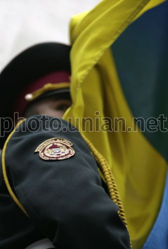 Near capital city administration was solemnly heaved up the State flag of Ukraine