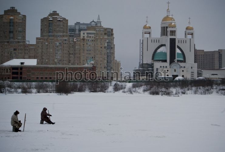 Frost-covered rudbeckia flowers in a flowerbed in Lviv