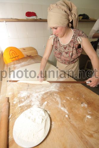 Woman rolled out the dough