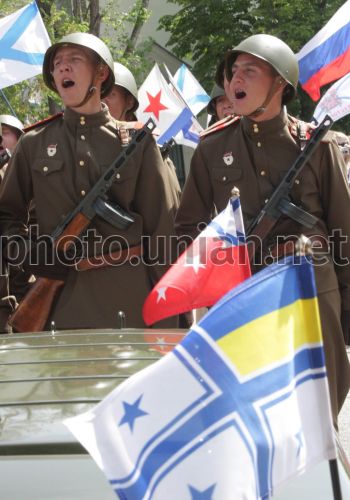 Servicemen in the form of soldiers of times of Great Patriotic war