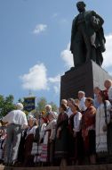 Laying flowers at the monument to Shevchenko
