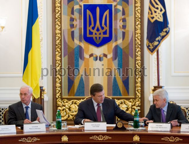 Nikolay Azarov, Viktor Yanukovich and Vlagimir Litvin
