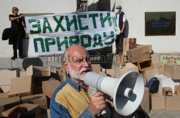 Participant of action on protecting of the Peizazhnaya avenue from developer of Ministry of foreign affairs, in Kiev, on Friday, September 24, 2010. The participants of action objected against proceeding in attempts by MFA to build a house on crossing of the Peizazhnaya avenue and Desyatinnaya street, in place, where created unique child's public garden with sculptures. Photo by Vladimir Gontar / UNIAN