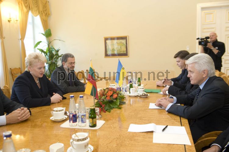 Chairman of Supreme Soviet of Ukraine Vladimir Lytvyn, right, and President of Lithuanian Republic Grybauskayte Dalya during meeting in Vilnius (Lithuania), on Friday, October 8, 2010, October, 7-8 the chairman of Supreme Soviet of Ukraine is with a working visit in Lithuanian Republic for participating in meeting of Inter-parliamentary Assembly of Supreme Soviet of Ukraine, Seym of Lithuanian Republic, Seym and Senate of the Republic Poland. Photo of Syrotkynoy Anastasyy / POOL / UNYAN