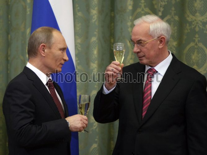 Russian Prime Minister Vladimir Putin, right, and Prime minister of Ukraine Nikolay Azarov during meeting in Kiev, on Wednesday, October 27, 2010. Russian Prime Minister Vladimir Putin is visiting the Ukrainian capital on Wednesday to take part in the latest meeting of the economic cooperation committee under the two countries' intergovernmental commission. Minister's visit to Kiev began with a meeting with Ukrainian President Viktor Yanukovych, followed by a short one with Prime Minister Nikolai Azarov. After these interpersonal meetings, the committee session will begin, and the two prime ministers are expected to hold a press conference afterwards. Normalization of the Ukrainian-Russian relations has a positive effect on economic cooperation between the two countries. The prime minister of the Russian Federation Vladimir Putin told about this today in Kyiv at a meeting with President of Ukraine Viktor Yanukovych. "As a result of the policy that has been carried on by you in the Russian direction, out political component is transformed into economic results," - said the Russian prime minister. Vladimir Putin noted the substantial growth of trade between the two countries. "We almost are going to pre-crisis level," - he said. The head of the Russian government also stressed that his visit to Ukraine was preceded by considerable preparatory action, which progressed in many ways thanks “to the political position of the Ukrainian leaders". However, according to him, the preparatory action was not easy, because it was necessary to adjust the positions of the parties to seek a compromise. Photo by Vladimir Gontar / UNIAN