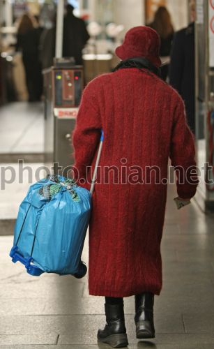 An elderly woman in a subway in Kiev, on Monday, January 31, 2011. Prime minister of Ukraine eliminated abolition of privileges for pensionaries on free travel in a capital subway. Photo by Vladimir Gontar / UNIAN