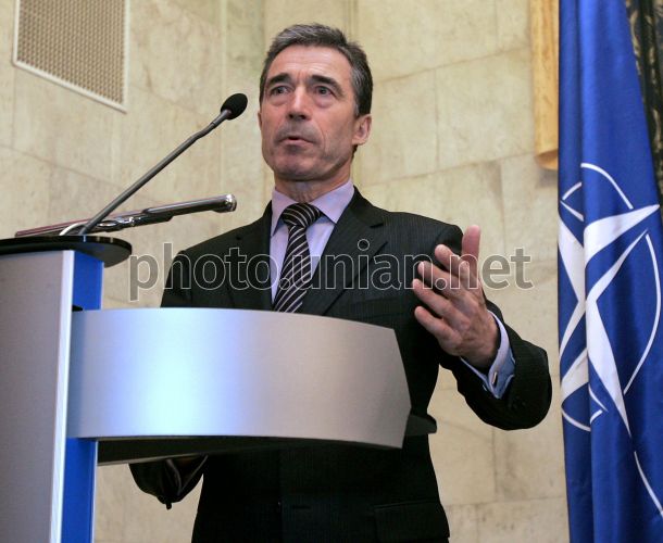 NATO Secretary General Anders Fogh Rasmussen during press-conference in Kiev, on Thursday, February 24, 2011. NATO is ready to help Ukraine in carrying out of reforms. NATO Secretary General Anders Fogh Rasmussen said this at the joint news conference with Foreign Minister of Ukraine. “NATO is ready to help Ukraine in process of reforms. Particularly, we have an appropriate experience in carrying out of defense reform and we are ready to help Ukraine in this area if Ukraine has a corresponding wish”, said Anders Rasmussen. According to his words, NATO is ready to discuss possibility of cooperation in such areas as energy security, cyber security and security at sea. He noted that Ukraine and NATO have such efficient institution of cooperation as Ukraine-NATO Commission and the Alliance wants to continue cooperation within the frameworks of this institution. Photo by Anastasia Sirotkina / POOL / UNIAN