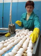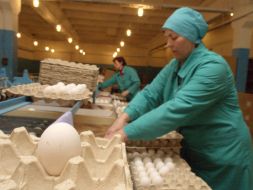 An elderly woman weaves and sells wickerwork on the street in central Kyiv