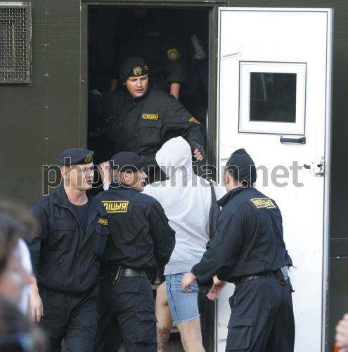 Miitia employees detain the participants of the protest action "revolution in social network" in Minsk (Belorussia), on Wednesday, June 22, 2011. This day in the dozens of towns of Belorussia the action of "silent solidarity” took place. The participants tried to protest without slogans and in a peaceful manner against the government. About 450 people were detained. Most of the detainees - more than 200 people – were in Minsk, the rest - in the regions. In the capital of Belarussia several journalists have been detained. Photo by Sergey Kostin / UNIAN