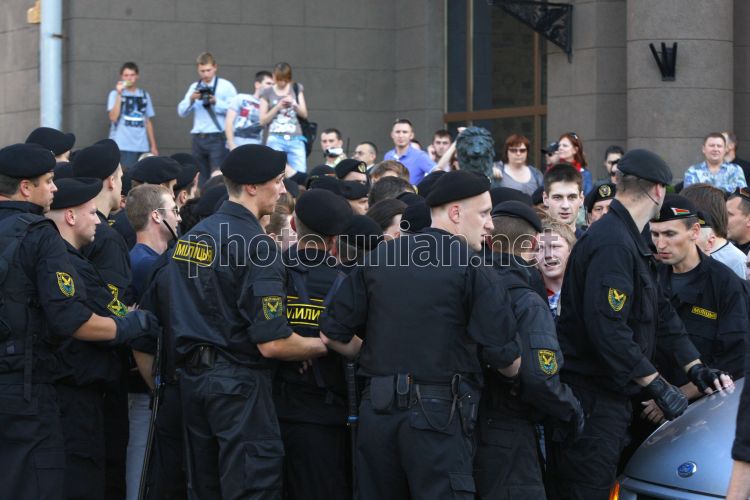 Miitia employees suppress the protest action "revolution in social network" in Minsk (Belorussia), on Wednesday, June 22, 2011. This day in the dozens of towns of Belorussia the action of "silent solidarity” took place. The participants tried to protest without slogans and in a peaceful manner against the government. About 450 people were detained. Most of the detainees - more than 200 people – were in Minsk, the rest - in the regions. In the capital of Belarussia several journalists have been detained. Photo by Sergey Kostin / UNIAN