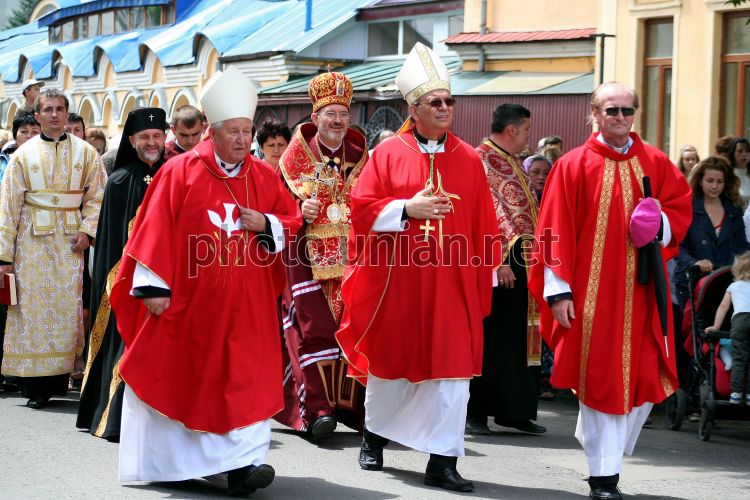 Apostolic Administrator of Mukachevo Greek Catholic diocese, the bishop Milan Shashik (center background) during the solemn procession with the relics of the Blessed Martyr Theodore on a street in Uzhgorod,on Tuesday, June 28, 2011. Photo by Yanosh Nemesh / UNIAN