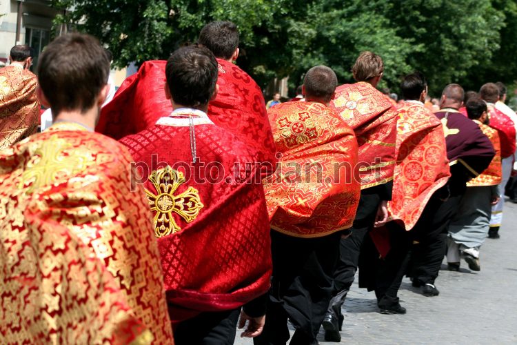 The participants of the solemn procession with the relics of the Blessed Martyr Theodore on a street in Uzhgorod,on Tuesday, June 28, 2011. Photo by Yanosh Nemesh / UNIAN