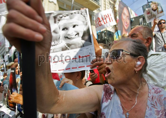 Supporters of Batkivshchyna Party leader and former Prime Minister of Ukraine Yulia Timoshenko during a break in a sitting of Pechersk District Court in Kiev, on Monday, July 18, 2011. The court decided to remove Vlasenko from the courtroom until the end of the judicial process on the gas supply case opened against Timoshenko. Photo by Andrey Skakodub / UNIAN