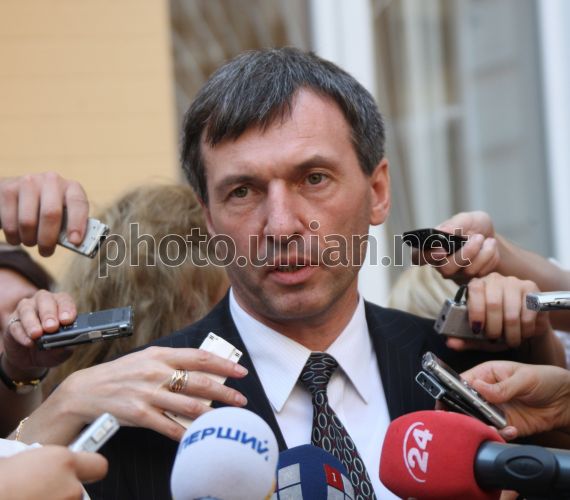 A defender of Batkivshchyna Party leader and former Prime Minister of Ukraine Yulia Timoshenko Nikolay Siryi answers the questions of the journalists during a break in a sitting of Pechersk District Court in Kiev, on Monday, July 18, 2011. The court decided to remove Vlasenko from the courtroom until the end of the judicial process on the gas supply case opened against Timoshenko. Photo by Aleksandr Prokopenko / POOL / UNIAN