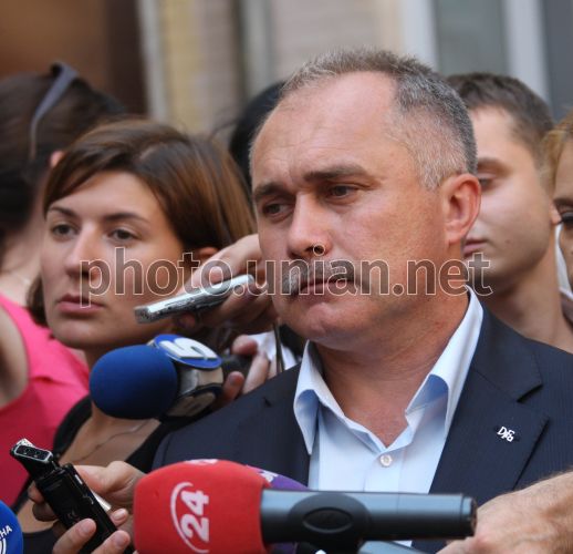 A defender of Batkivshchyna Party leader and former Prime Minister of Ukraine Yulia Timoshenko Aleksandr Plakhotnyuk answers the questions of the journalists during a break in a sitting of Pechersk District Court in Kiev, on Monday, July 18, 2011. The court decided to remove Vlasenko from the courtroom until the end of the judicial process on the gas supply case opened against Timoshenko. Photo by Aleksandr Prokopenko / POOL / UNIAN