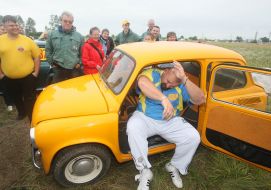 The strongest man of Ukraine Vasiliy Virastyuk (foreground, right) during the 1st All-Ukrainian Cossack festival "Bogdanovі zvytyagi", in Gorodok (Lvov region), on Saturday, July 30, 2011. In Lvov region the 1st Ukrainian Cossack festival "Bogdanovі zvytyagi" took place. It was dedicated to the battle of Gorodok of the army of Bogdan Khmelnytskiy. Photo by UNIAN