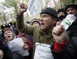 Protest action of citizens sufferings from a failure at the Chernobyl atomic station near building of Ukraine Cabinet