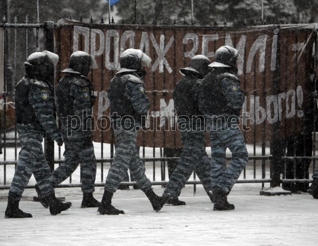 Agrarians protest against passing an act about the market of earth near buildings of Ukrainian parliament