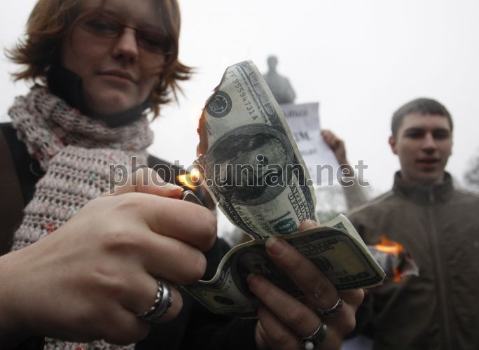 Flash mob "Burn out a dollar, burn out an euro, burn out a rouble - protect Ukraine" in Kiev