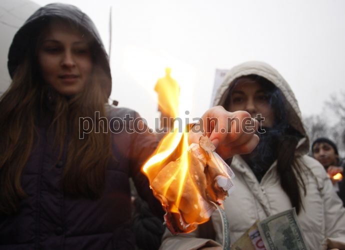 Flash mob "Burn out a dollar, burn out an euro, burn out a rouble - protect Ukraine" in Kiev