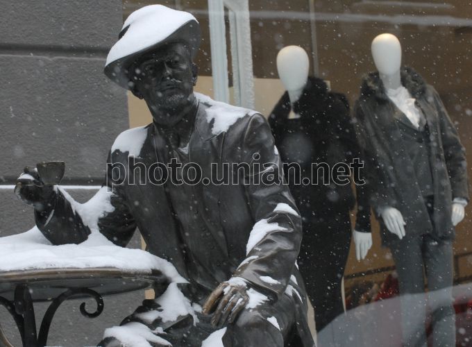 Busts of Ivan Chernyakhovskyi and Pavel Rybalka under the snow