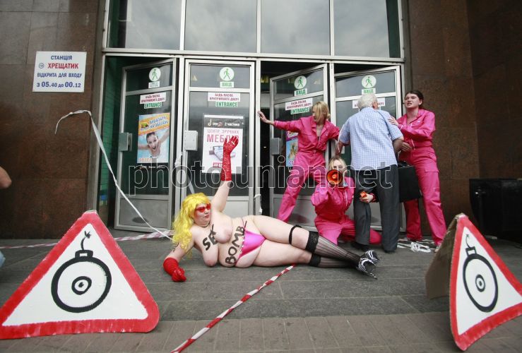FEMEN activist showed chest near the metro station "Kreschatik"