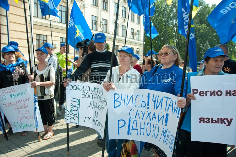 In Zaporozhye supporters and opponents of the language law rallies in front of City Hall