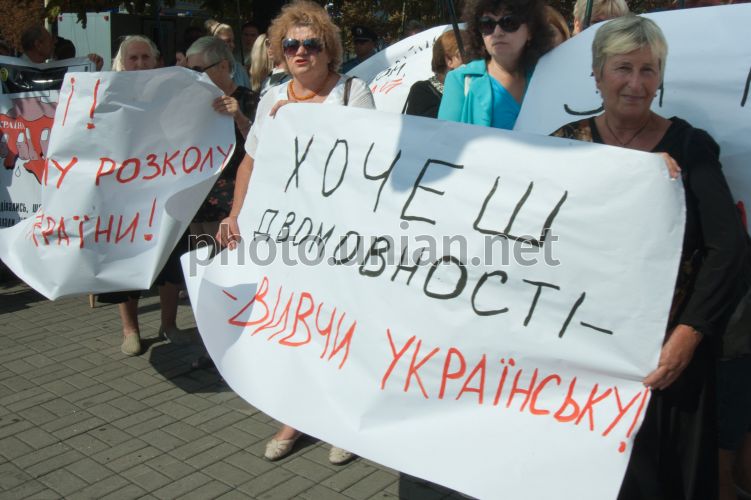 In Zaporozhye supporters and opponents of the language law rallies in front of City Hall