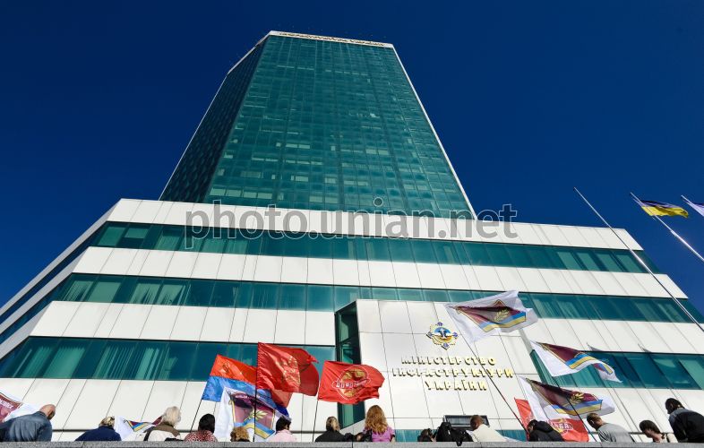 The workers of railway picket building of ministry of infrastructure of Ukraine
