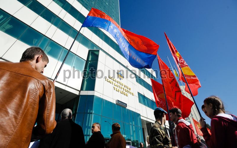 The workers of railway picket building of ministry of infrastructure of Ukraine