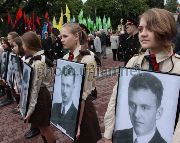The participants of celebration of Day of heroes in Lvov