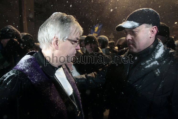 Soldiers of the Internal troops force back participants of the mass meeting in the Luteranskaya street