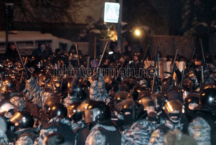 Soldiers of the Internal troops force back participants of the mass meeting in the Luteranskaya street