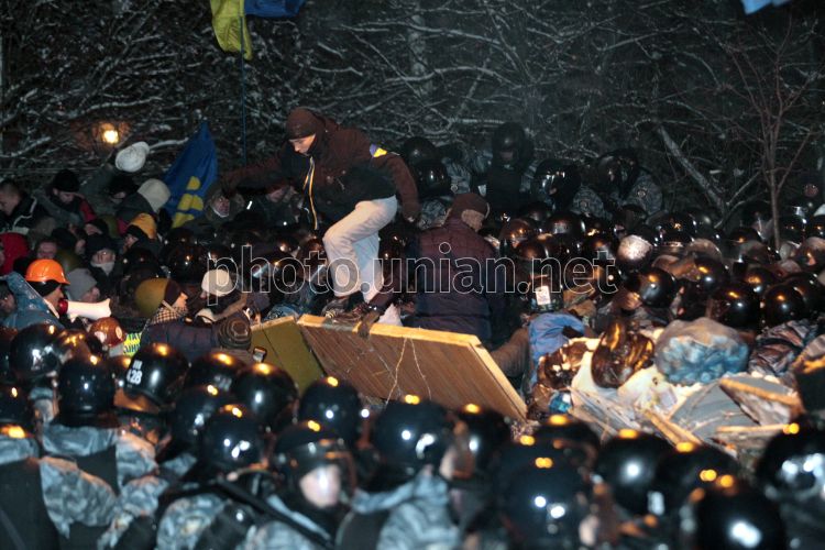 Destruction of barricades at the corner ofLyuteranskaya and Bankova Street in Kiev