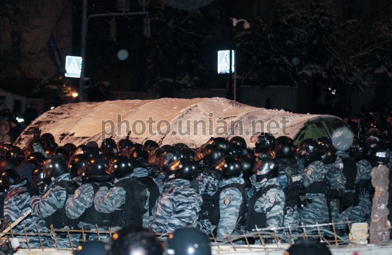 Destruction of barricades at the corner ofLyuteranskaya and Bankova Street in Kiev