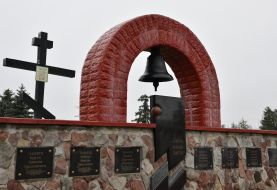 Laying flowers at the monument to the "Heroes of Chernobyl"
