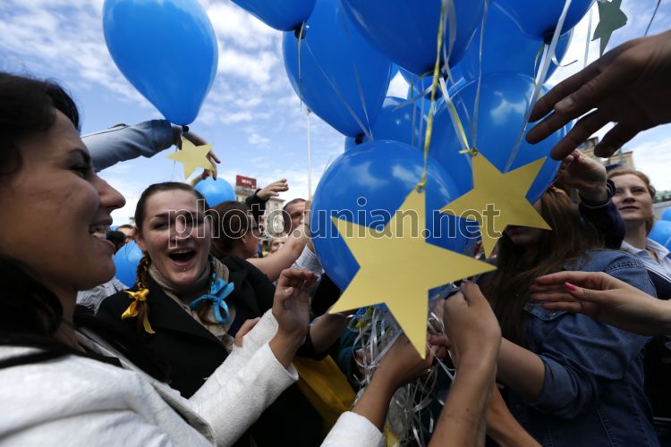Flashmob to commemorate the signing of the Association Agreement with the EU held at Maydan Nezalezhnosti in Kiev
