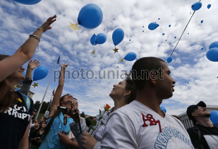 Flashmob to commemorate the signing of the Association Agreement with the EU held at Maydan Nezalezhnosti in Kiev