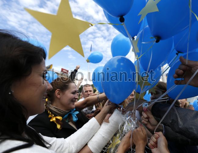 Flashmob to commemorate the signing of the Association Agreement with the EU held at Maydan Nezalezhnosti in Kiev