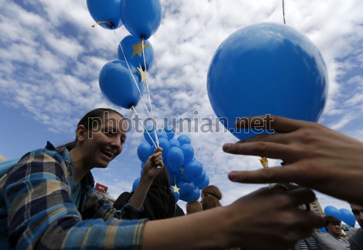 Flashmob to commemorate the signing of the Association Agreement with the EU held at Maydan Nezalezhnosti in Kiev