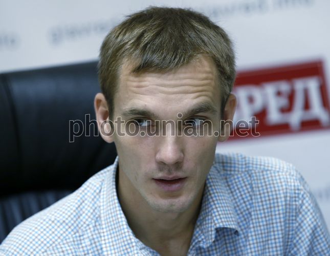 Press conference by TV "2+2" cameraman Ivan Ljubish-Kirdey who has broken out the encirclement near Ilovaysk