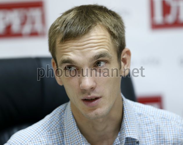 Press conference by TV "2+2" cameraman Ivan Ljubish-Kirdey who has broken out the encirclement near Ilovaysk