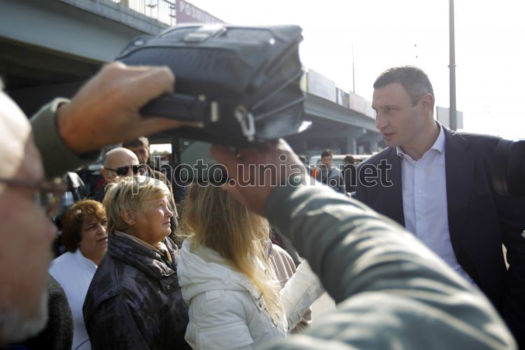 Vitaliy Klichko talks to the residents of the district