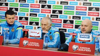 Press conference coach of national football team Michael Fomenko in Seville, March 26, 2015