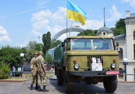 Transfer of eleven military cars in ATO zone took place near the Ukrainian House