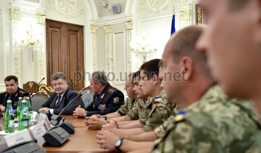 Meeting between President of Ukraine Petro Poroshenko, with the military who liberated a year ago, Slavic and Kramatorsk