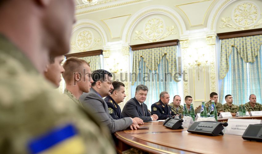 Meeting between President of Ukraine Petro Poroshenko, with the military who liberated a year ago, Slavic and Kramatorsk